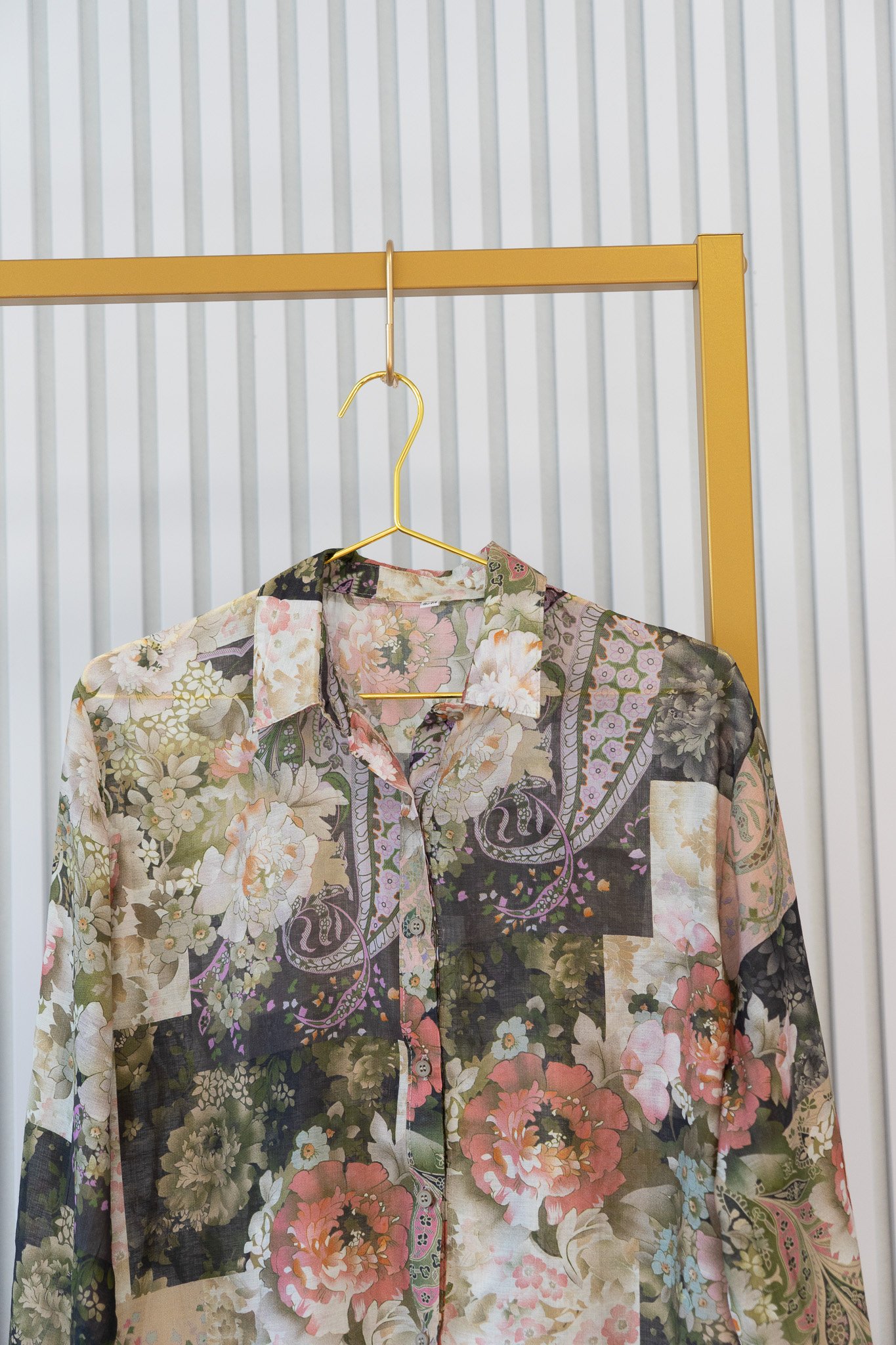 Wat stoerdere blouse met lange mouwen die eenvoudig opgerold en vastgezet kunnen worden met een knoopje. Uitgevoerd in een vrolijke, kleurrijke print voor een eigentijdse look. Gemaakt van comfortabel materiaal, voor een casual en veelzijdige outfit.