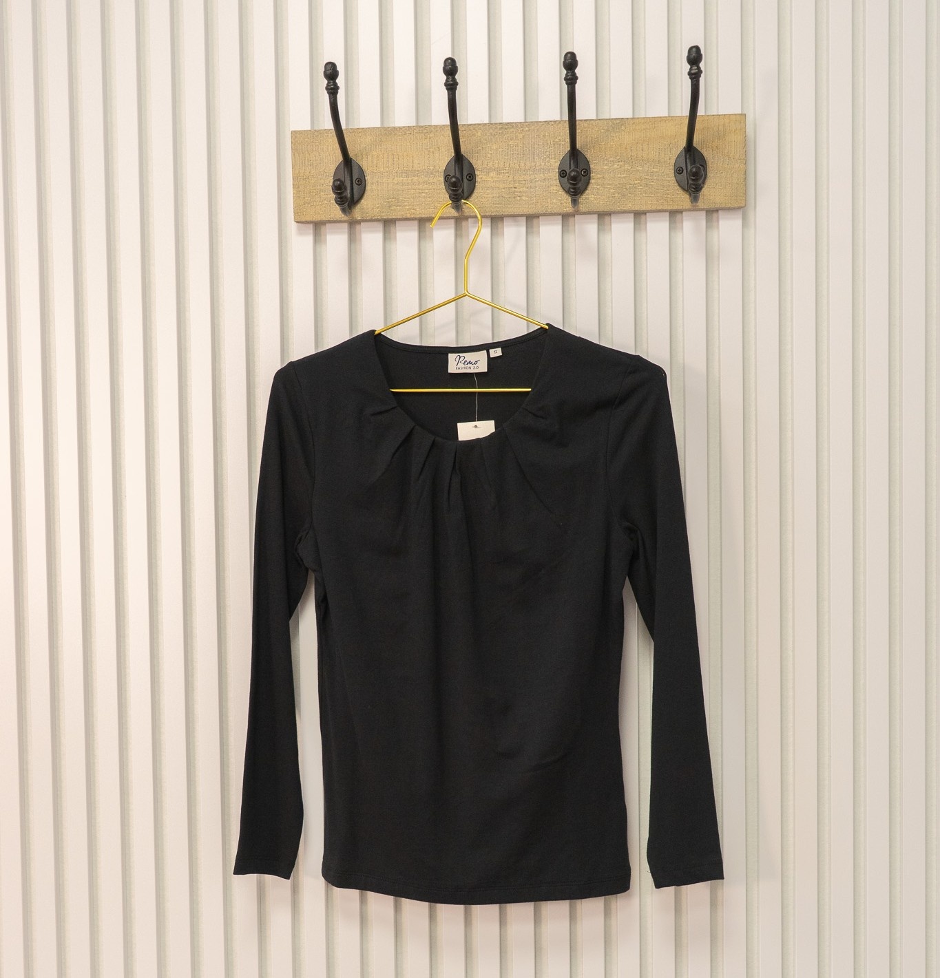 Dames shirt Lizet plooitjes lange mouw - zwart