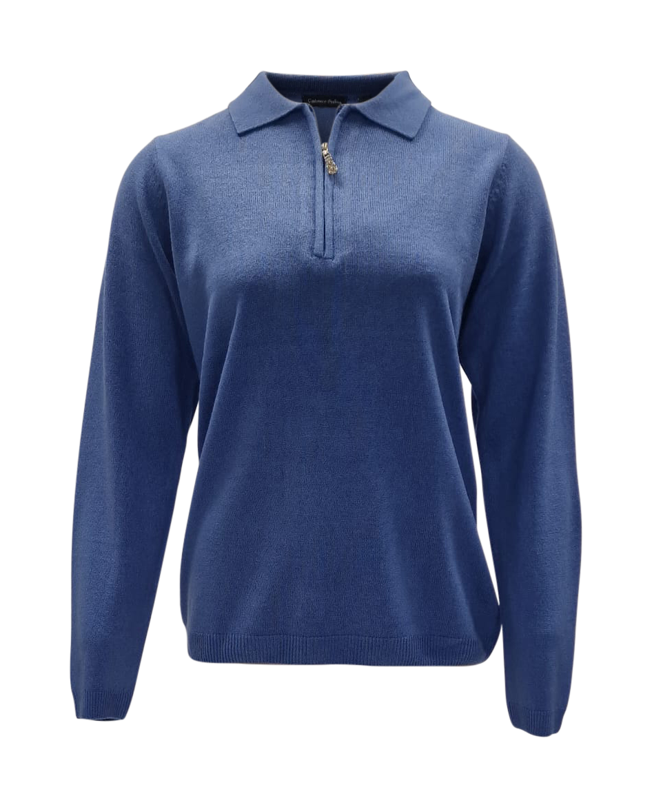 Dames trui met polokraag en rits. De trui is afgewerkt met geribde boorden. Gemaakt in een zachte kwaliteit wat zorgt voor draagcomfort.