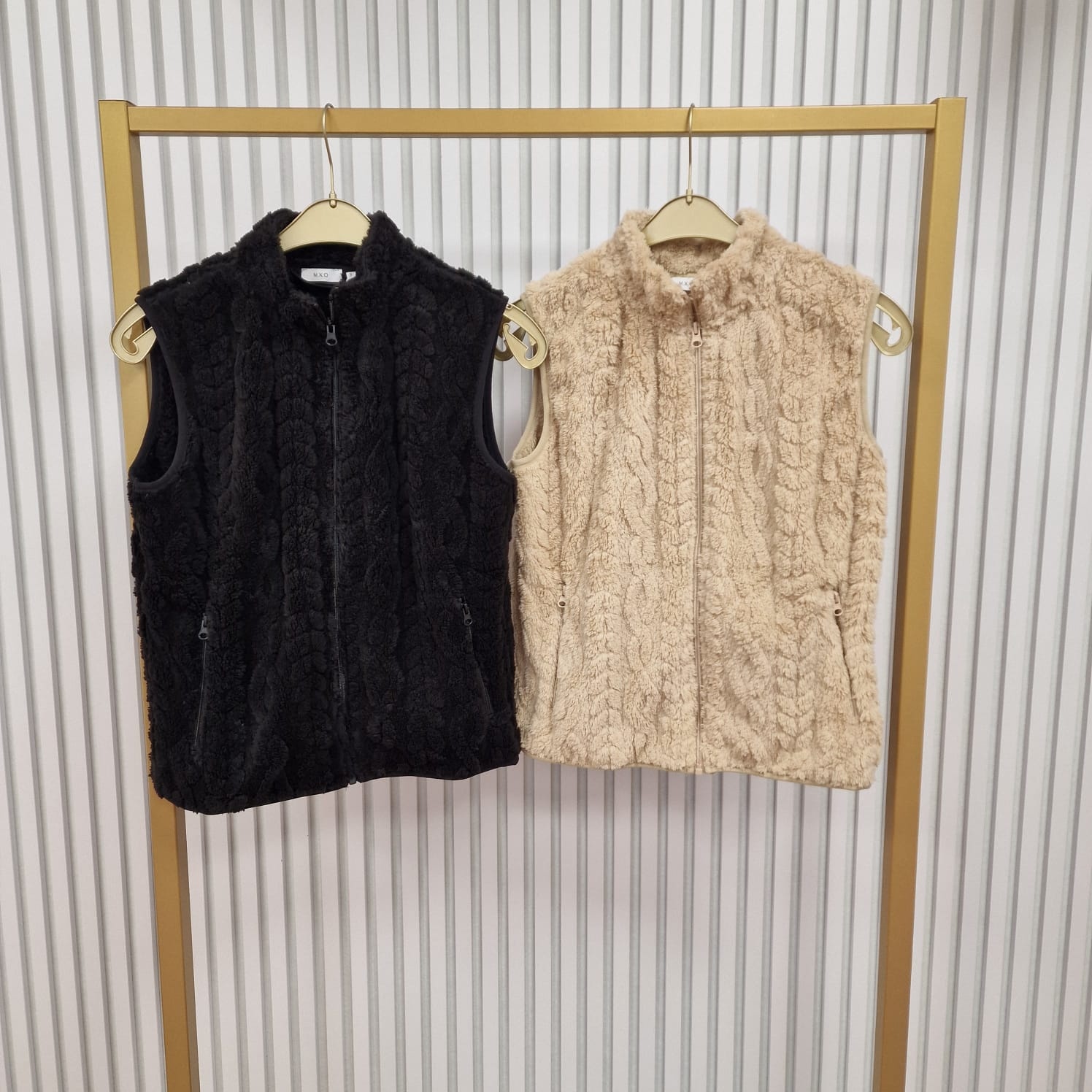 Gilet van mooie teddykwaliteit. Het gilet voelt heerlijk zacht aan en is voorzien van een opstaande kraag, sluit met ritssluiting en heeft steekzakjes. Perfect om te combineren over een blouse, trui of jurk voor een modieuze laagjeslook.