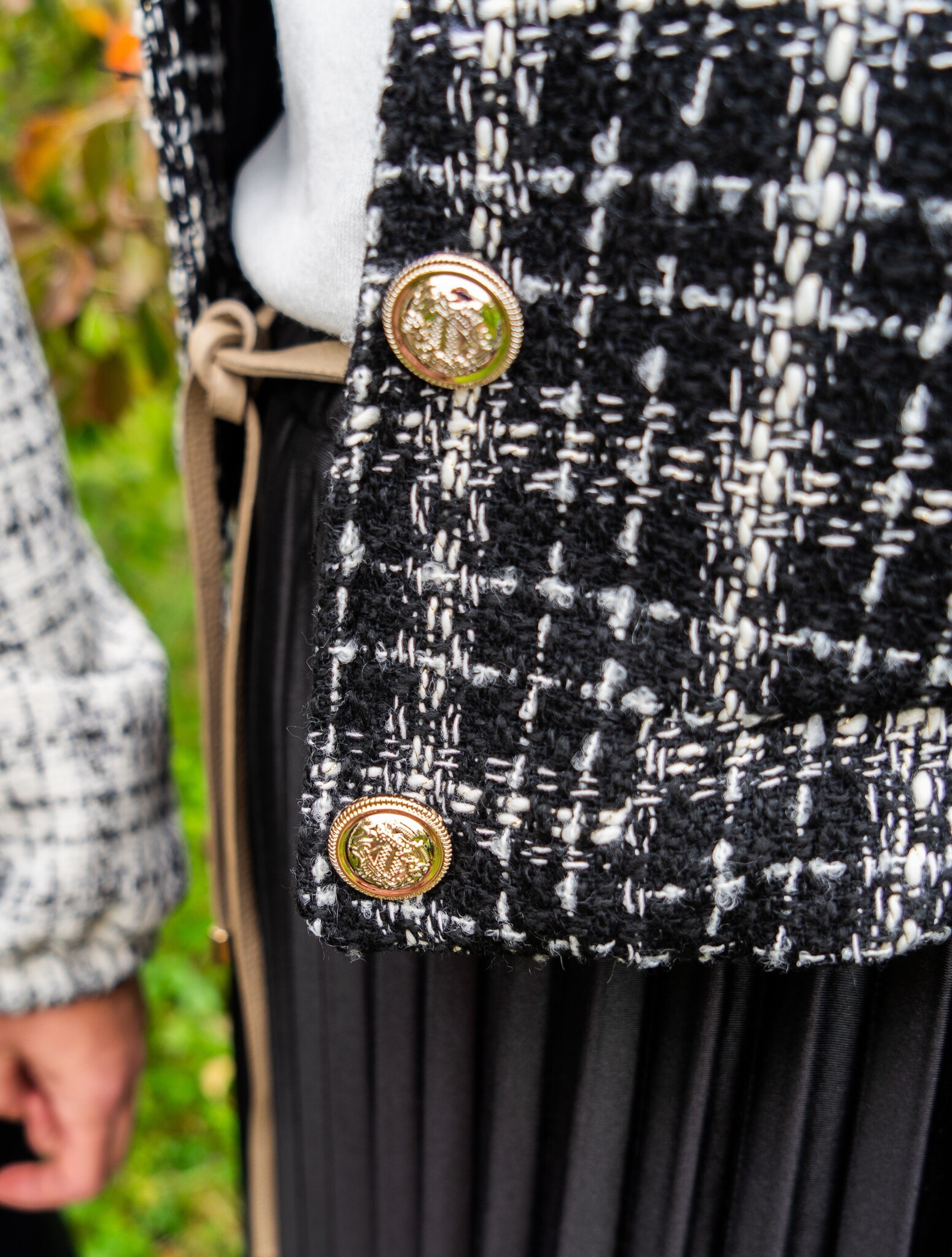 Dit stijlvolle bomberjasje voor (jonge) dames is uitgevoerd in een bouclé stof en vormt de perfecte mix tussen casual en chic. Kenmerkende details zijn de goudkleurige knopen, elastische boorden en een decoratief klepzakje.