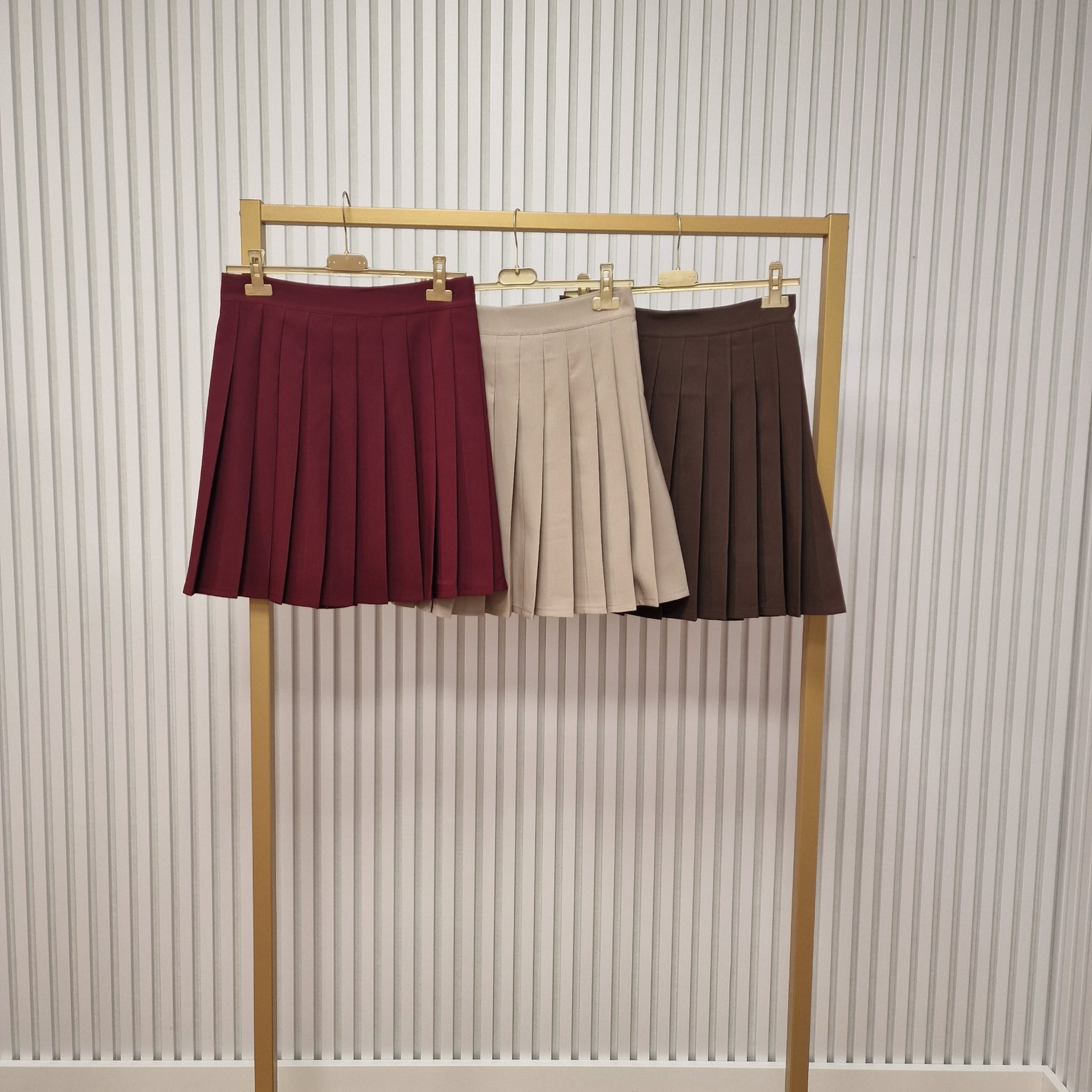 Rokje met plooien en tailleband met knoopsluiting. Het rokje geeft veel mogelijkheden om op verschillende manieren te combineren met diverse items.