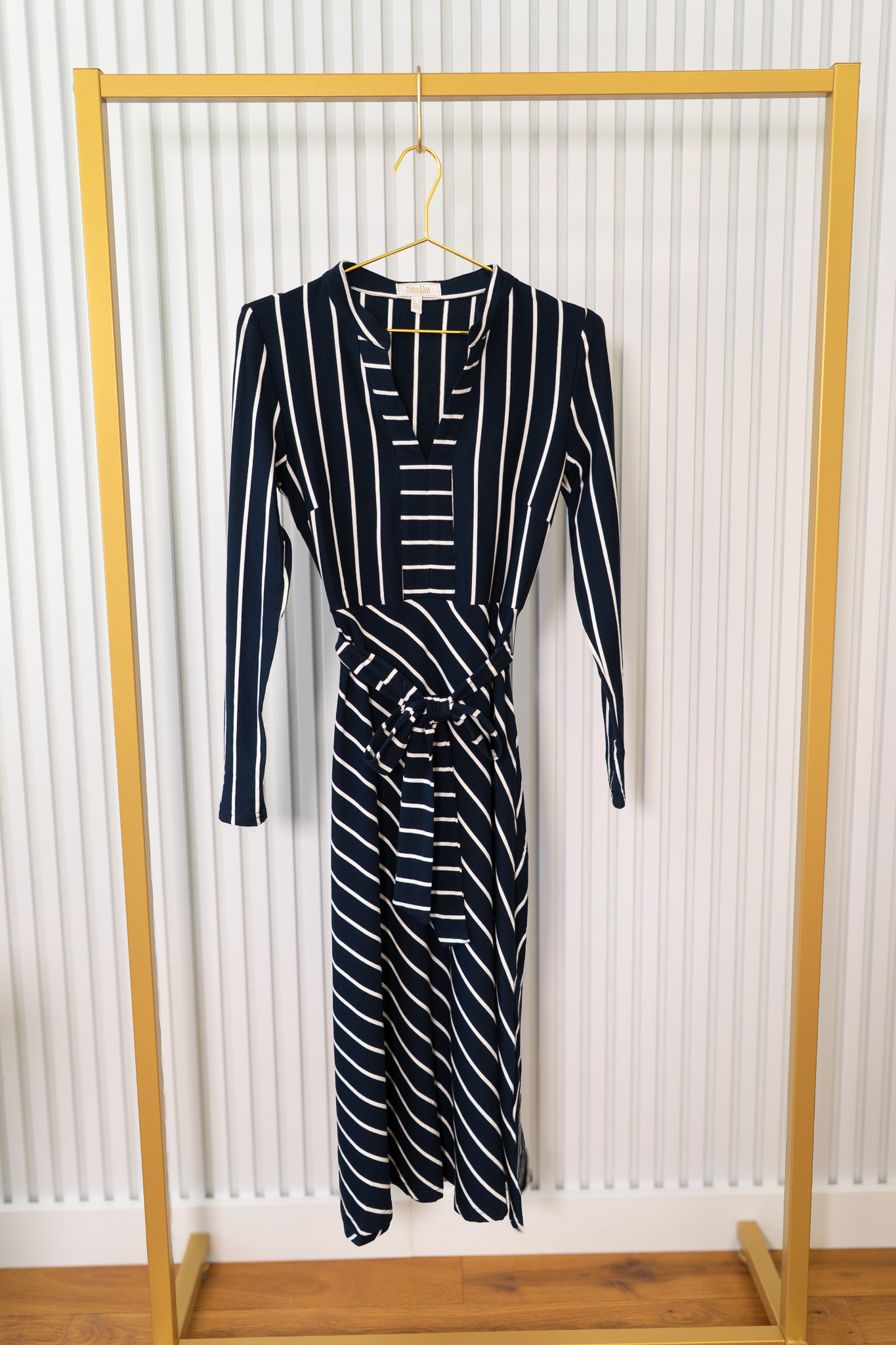 Deze elegante jurk is een tijdloze must-have voor elke garderobe. Hij heeft een V-hals met halsboord, een doorknoopsluiting, lange mouwen en een knoopceintuur. Het zachte materiaal voelt comfortabel aan en maakt de jurk veelzijdig voor elke gelegenheid.