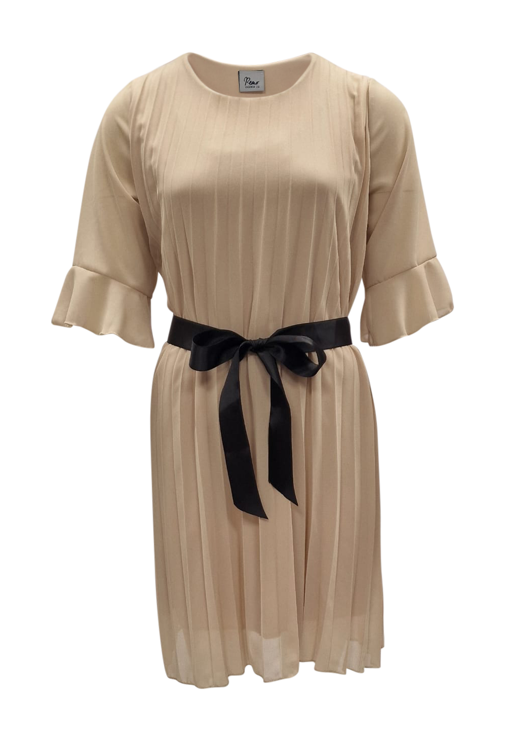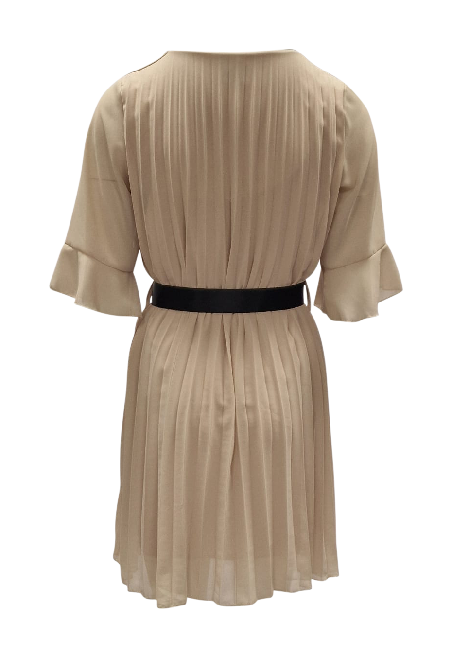 Dames jurk in plissé met leuke mouw en strikceintuur in zwart. De jurk is volledig gevoerd. Leuk jurkje met een jonge uitstraling. In verschillende kleuren verkrijgbaar. Ook leuk te combineren met een gevlochten riempje uit onze collectie.