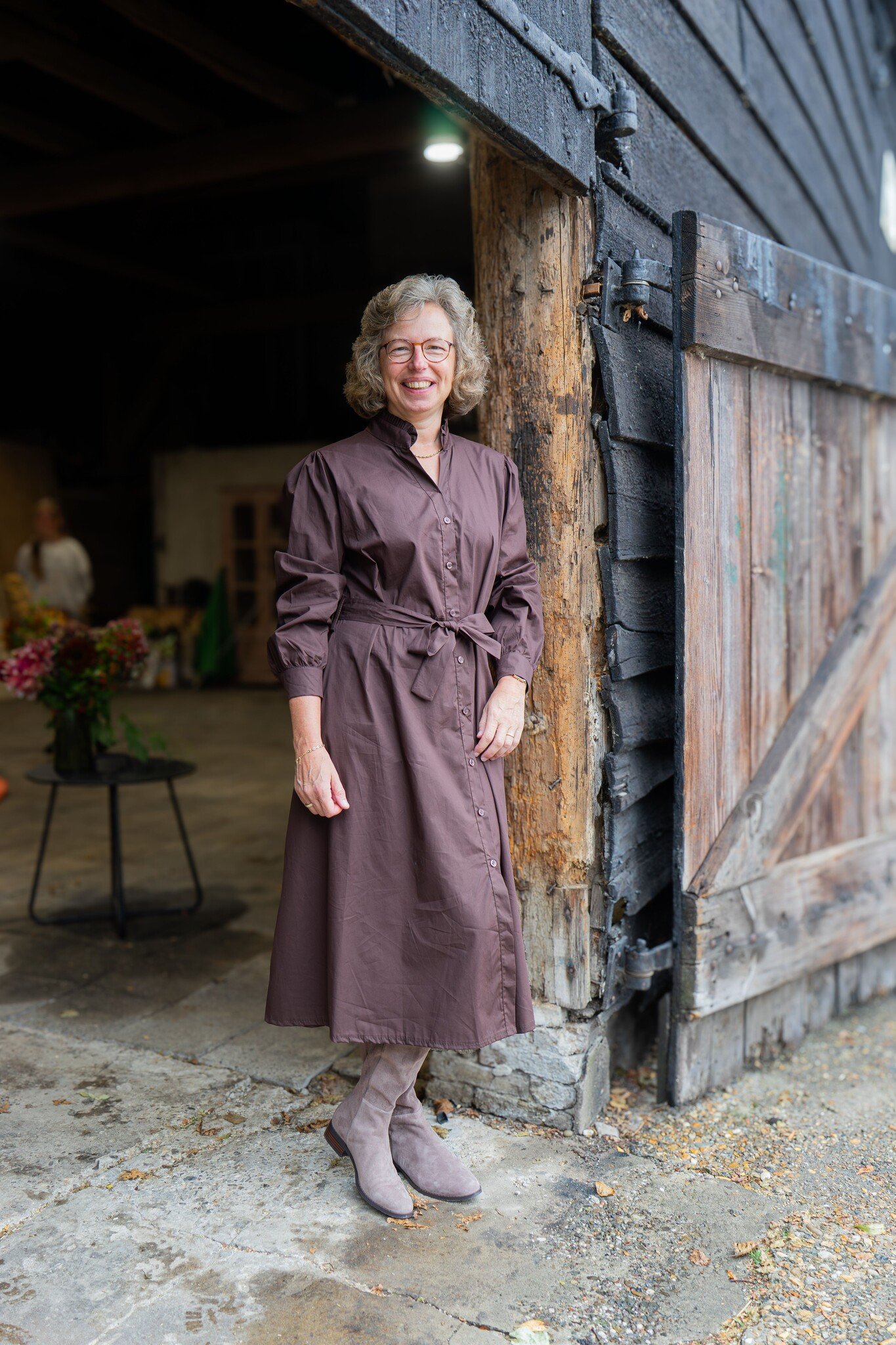Deze lange doorknoopjurk is een echte blikvanger. Vanuit de taille loopt de rok mooi uit. De jurk is afgewerkt met een subtiel boordje en verfijnde ruches. Perfect om zowel casual met sneakers als stijlvol met hakken te dragen.
