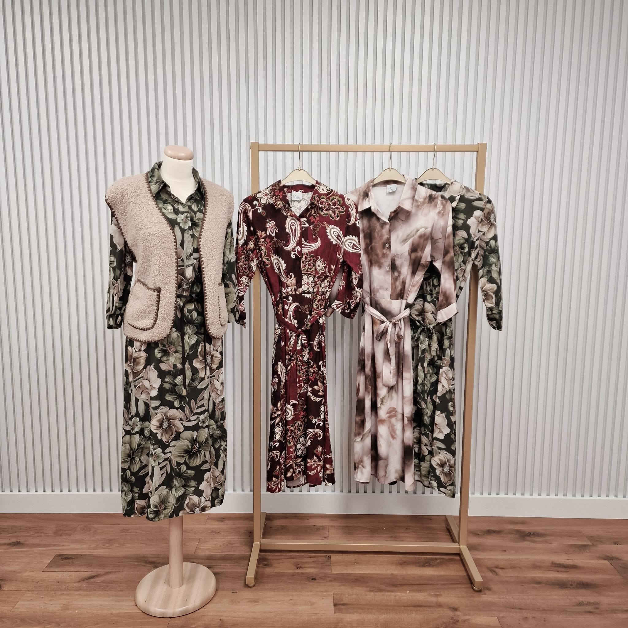 Comfortabele jurk met halve doorknoopsluiting en kraag. Het model heeft 3/4 mouwen en maakt de jurk geschikt voor meerdere seizoenen. De strikceintuur in de taille is afneembaar en verstelbaar. De jurk is gemakkelijk te stylen van casual tot chic.