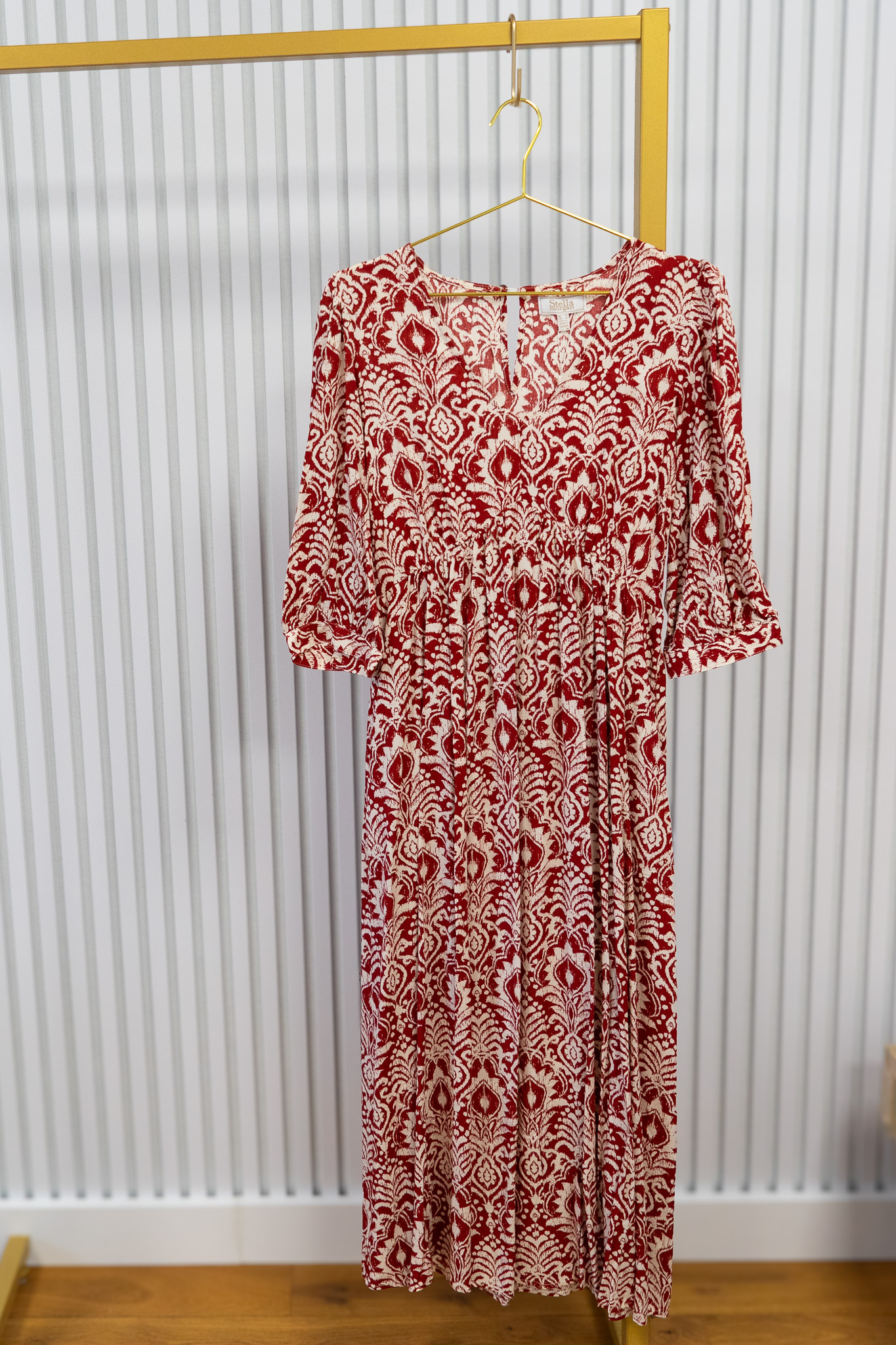 Deze jurk heeft een V-hals en een sluiting aan de achterzijde voor een mooie pasvorm. De 3/4 mouwen zijn afgewerkt met elastiek en ook het elastiek in de taille accentueert subtiel het silhouet. Een veelzijdige jurk die comfortabel draagt.