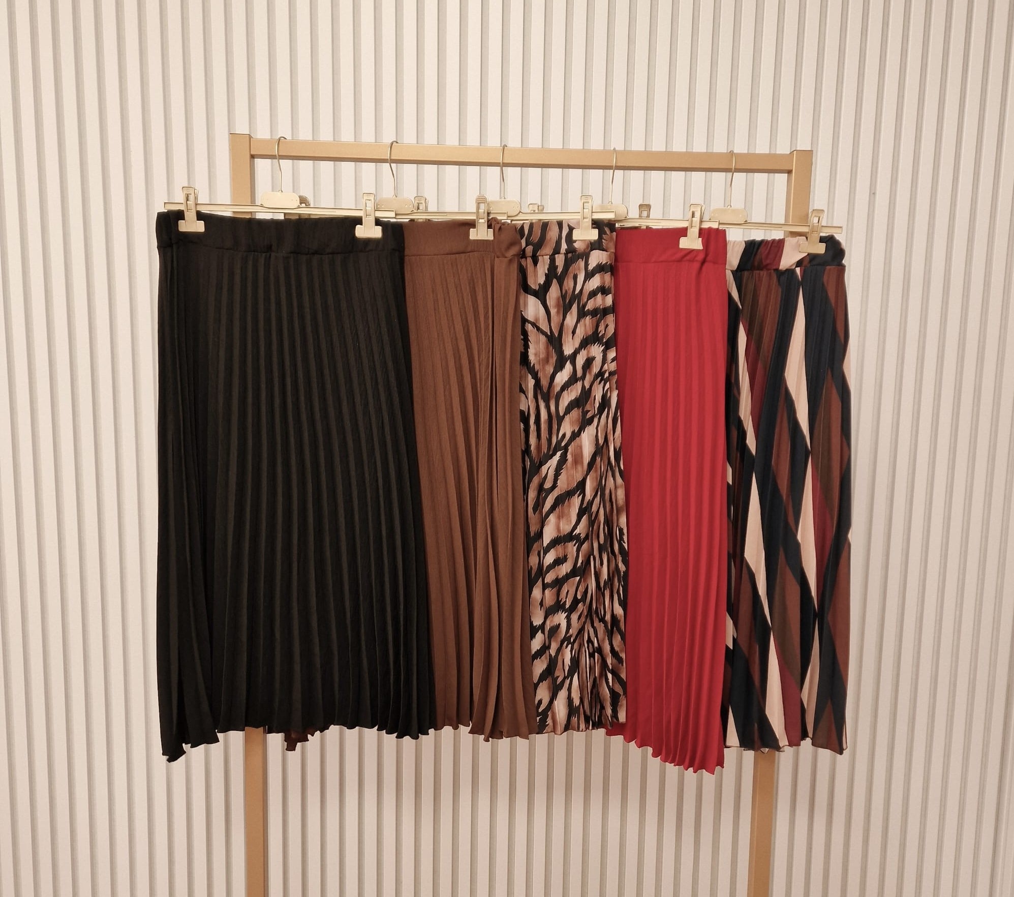 Deze plissé rok combineert comfort met stijl. De elastische tailleband zorgt voor een perfecte pasvorm, terwijl de fijne plooien in de stof een mooie uitstraling geven. De rok valt soepel en heeft een voering.