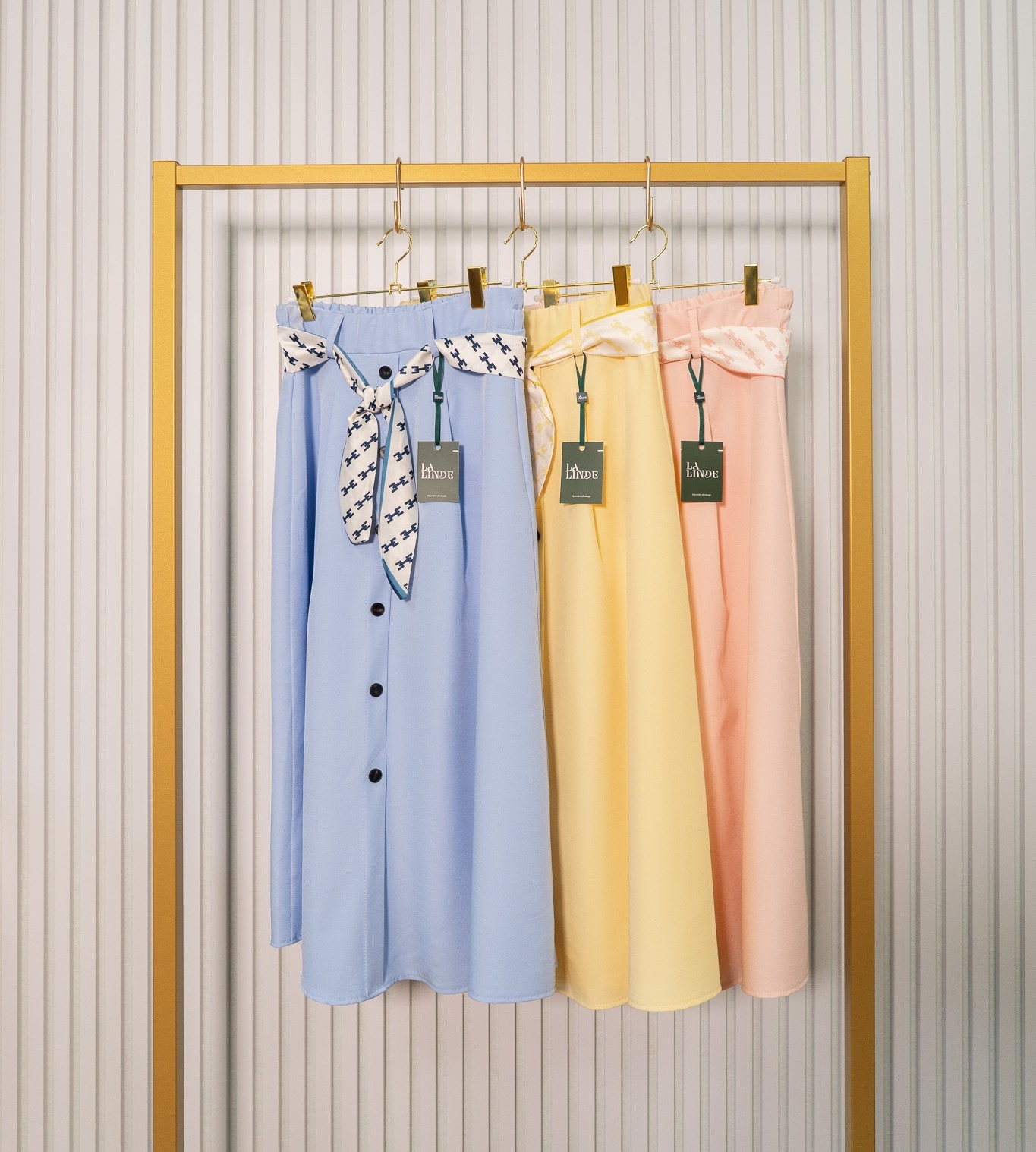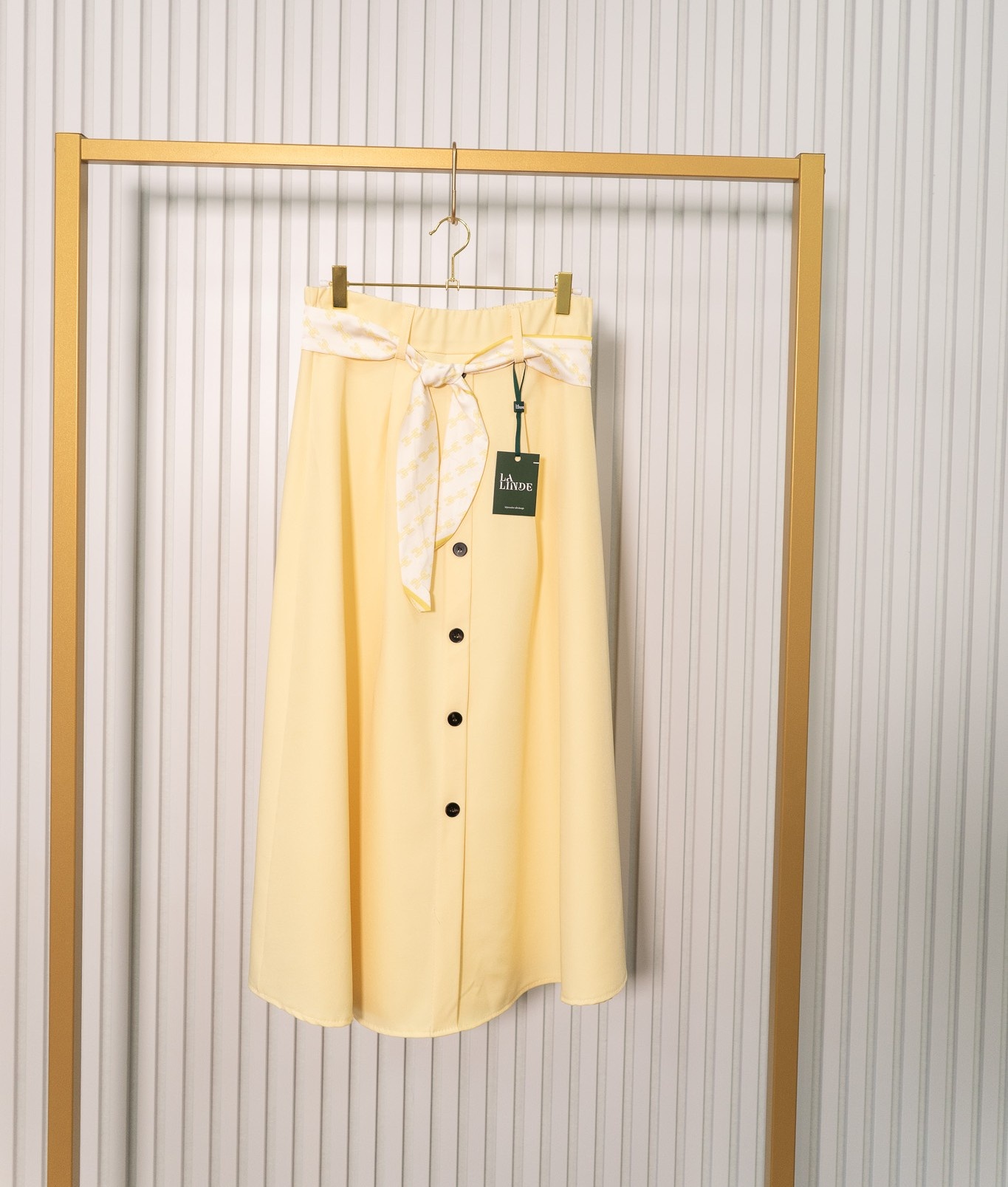Deze elegante rok met platte plooien heeft een gesloten doorknoopsluiting die zorgt voor een tijdloze uitstraling. Het bijpassende sjaaltje, dat als ceintuur gedragen kan worden, vormt een speels accent. Een item dat moeiteloos te combineren is.
