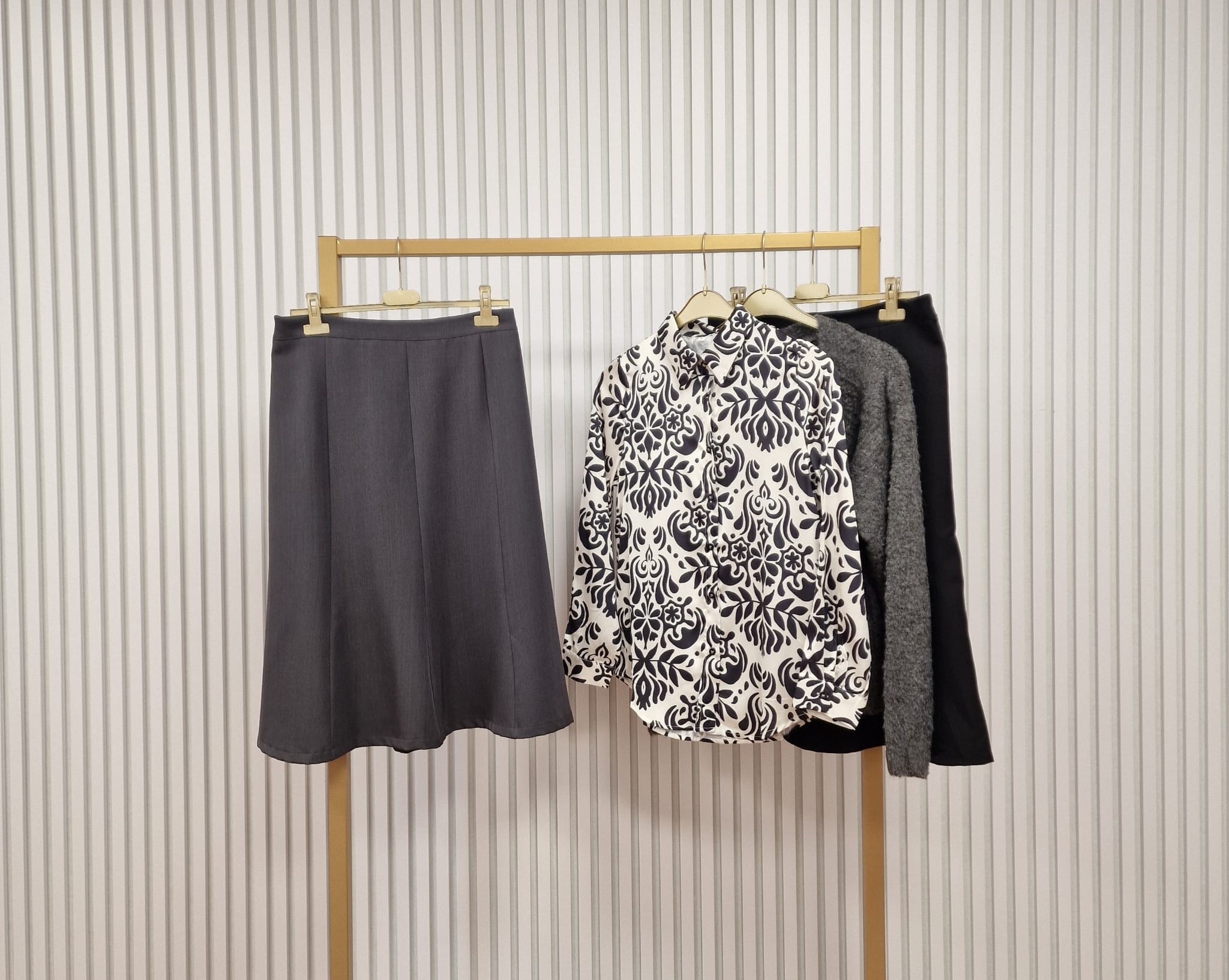 Deze klassieke wijdvallende rok is een comfortabel item voor het najaar. De rok is voorzien van sierlijke naden. Het gedeeltelijke elastiek in de tailleband zorgt voor een prettige pasvorm. De rok is gemaakt van een stevigere stof en is volledig gevoerd.