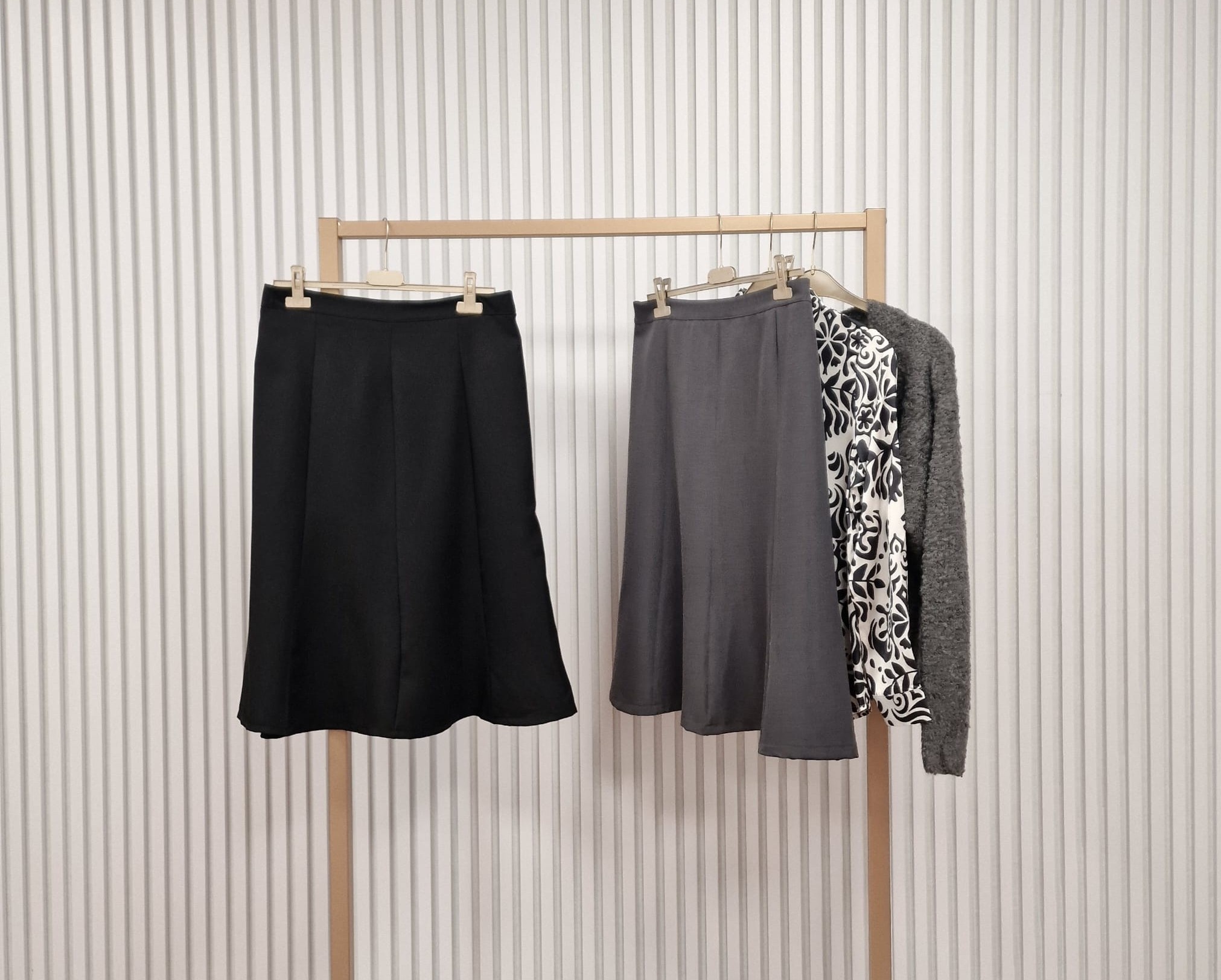 Deze klassieke wijdvallende rok is een comfortabel item voor het najaar. De rok is voorzien van sierlijke naden. Het gedeeltelijke elastiek in de tailleband zorgt voor een prettige pasvorm. De rok is gemaakt van een stevigere stof en is volledig gevoerd.