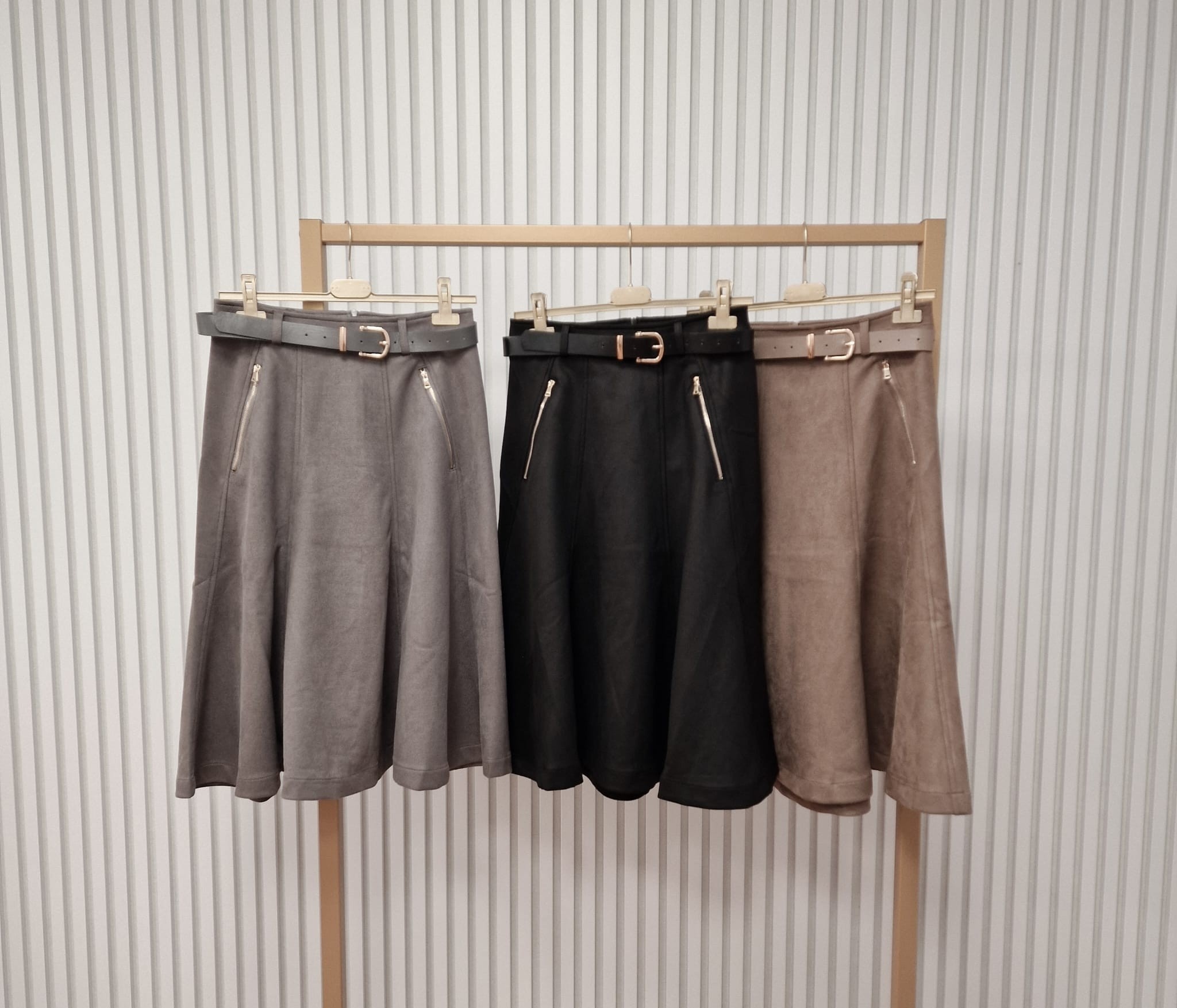 Deze A-lijn rok met bijpassende riem combineert stijl en comfort in één. De ritsjes in de zakken en de zichtbare siernaden geven de rok een eigentijdse uitstraling. Gemaakt van een stevige maar soepele stof, perfect voor zowel casual als geklede outfits.