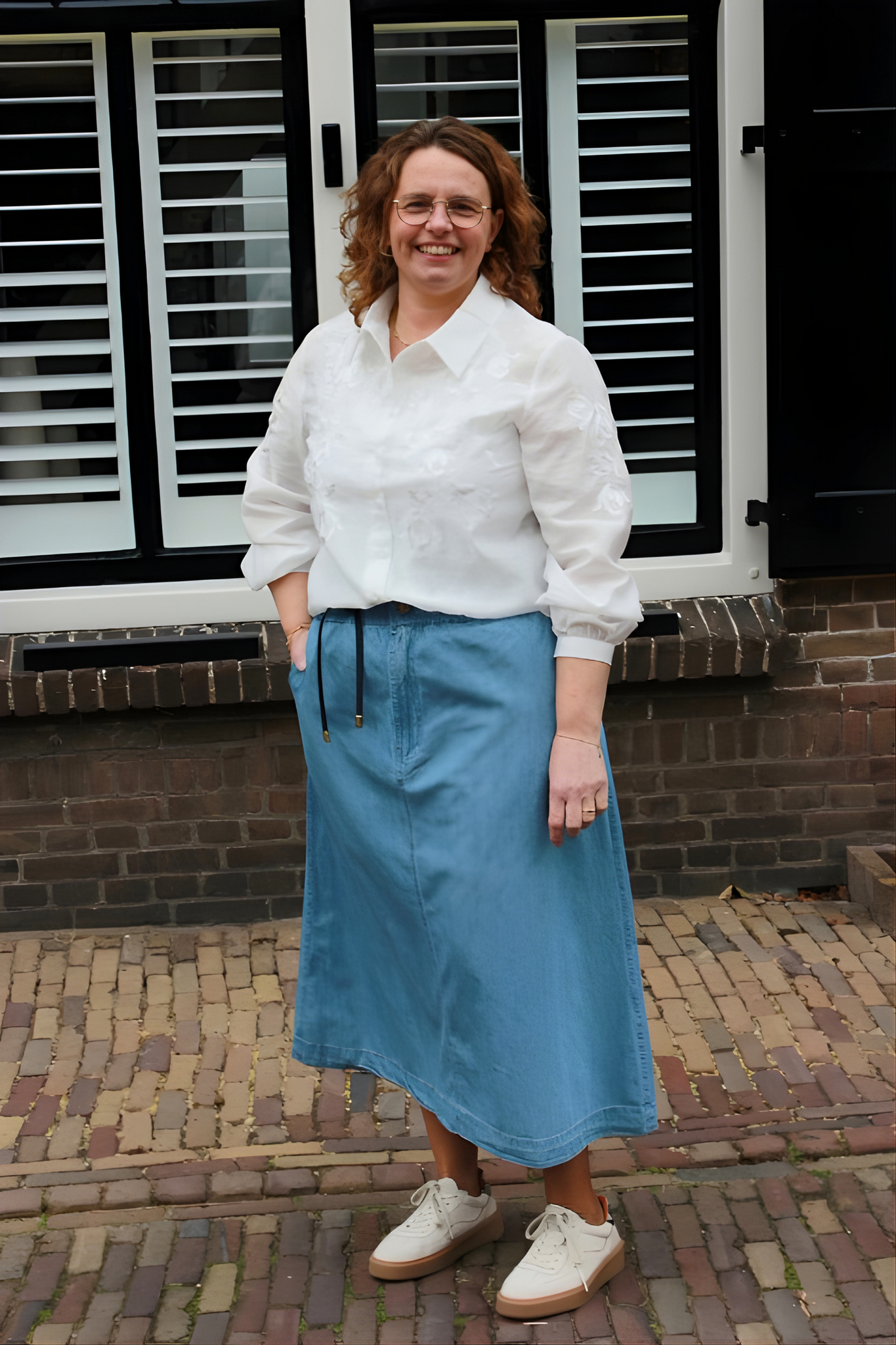 Comfy damesrok! Deze rok is gemaakt van zachte, soepele jeansstof voor ultiem draagcomfort. Het iets wijduitlopende model met fijne lengte valt mooi en de steekzakken voegen een praktisch en casual detail toe. Een perfect item voor elke dag!