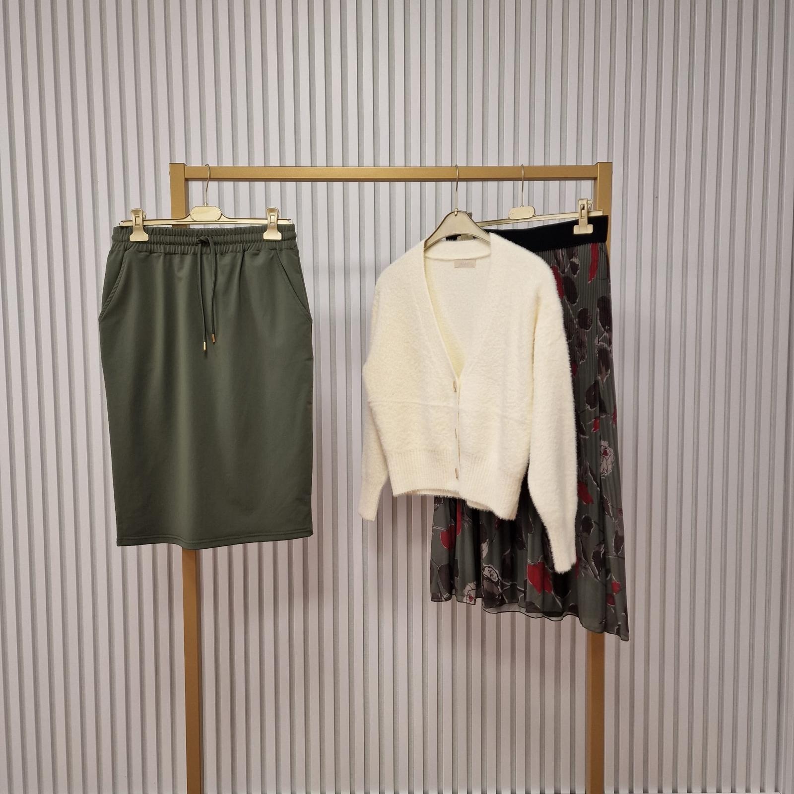 Rok gemaakt in comfortabele en soepele travelstof. De rok heeft een elastische tailleband met tunnel en een strikceintuur, waardoor hij mooi aansluit en gemakkelijk te verstellen is. De rok is voorzien van handige steekzakken.