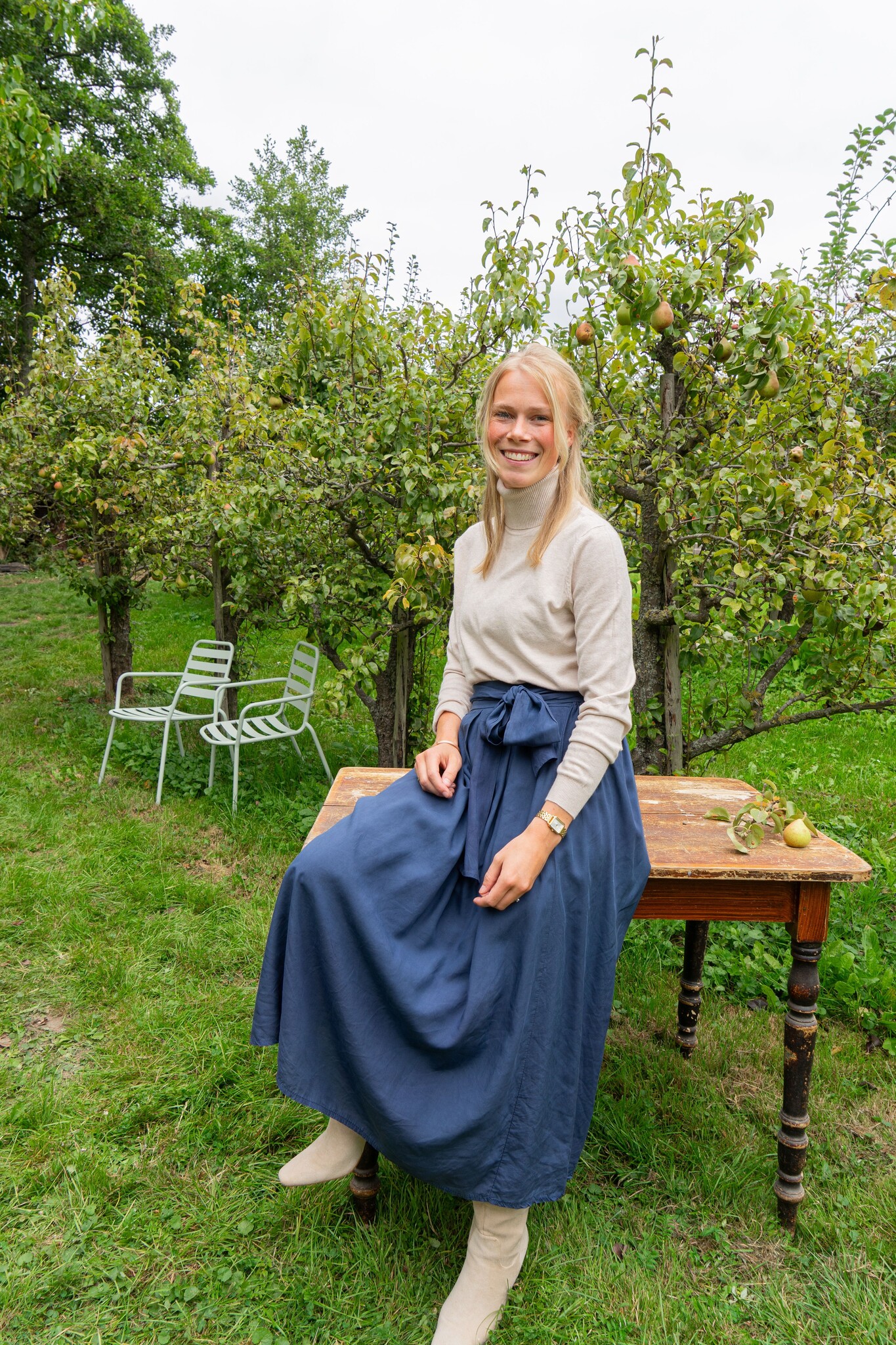 Rok in trendy model. Het voorpand is voorzien van plooien. De tailleband is aan de voorzijde glad afgewerkt en aan de achterzijde voorzien van elastiek, zodat de rok altijd mooi aansluit en comfortabel zit. De brede strikceintuur geeft een extra accent.