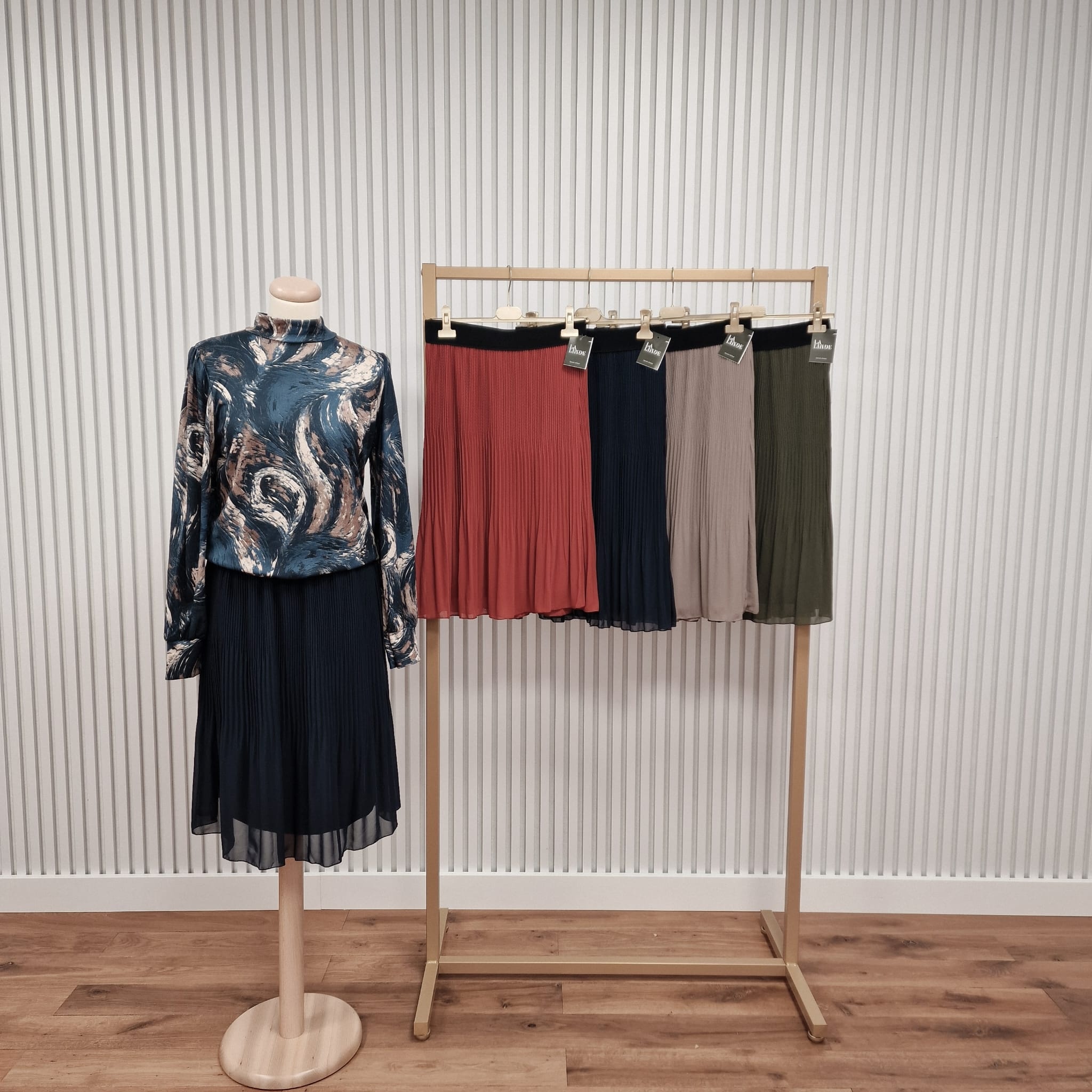 De plissérok voegt moeiteloos stijl toe aan je outfit. De fijne plooien creëren een elegante, look en zorgen voor een vloeiende beweging bij elke stap. Gemaakt van een licht en soepelvallend materiaal met een elastische tailleband. De rok is gevoerd.