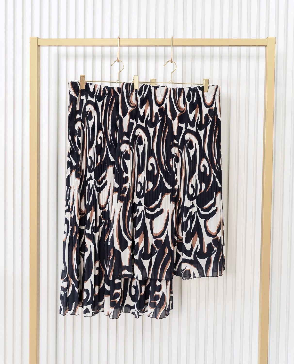 Rok plissé lang model - dessin donkerblauw/offwhite