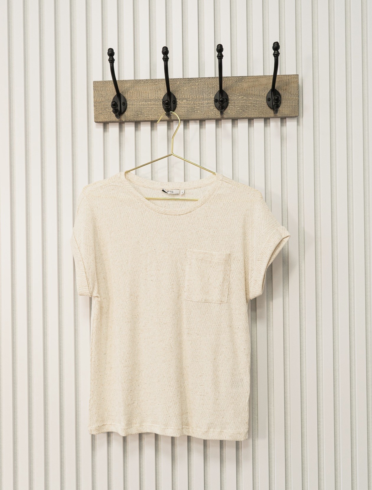 Veelzijdig dames shirt in een mooie basic kleur. Het model heeft aangeknipte mouwtjes, een borstzakje en een subtiel ruitpatroon in de stof voor een verfijnde uitstraling. Comfortabel en perfect te combineren voor zowel casual als geklede looks.