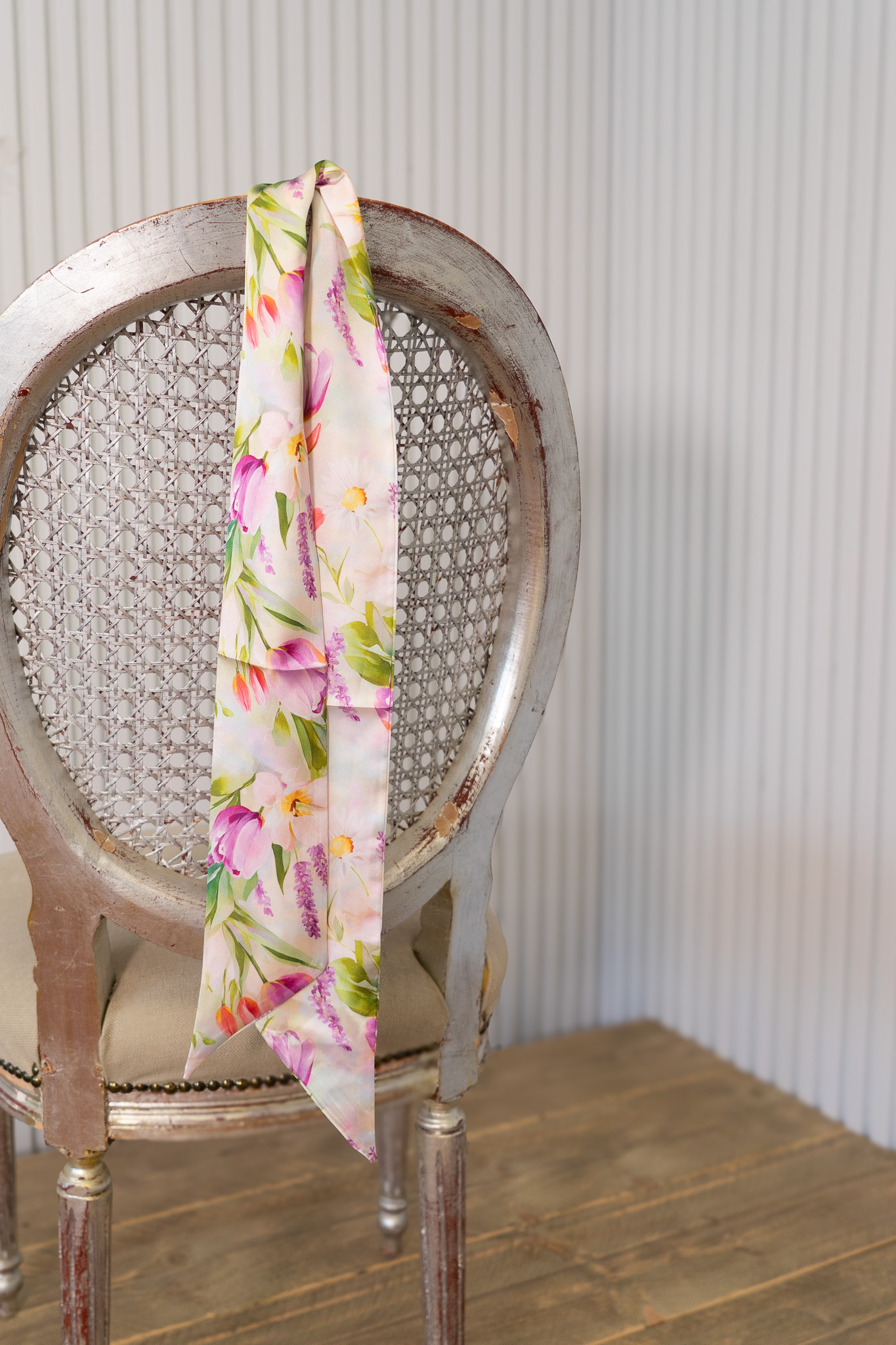 Dit sjaaltje is een luxe en veelzijdig modeaccessoire, vervaardigd uit 80% viscose en 20% zijde. Met een lengte van ongeveer 120 cm is dit sjaaltje perfect voor om de nek, aan een tas of in het haar.