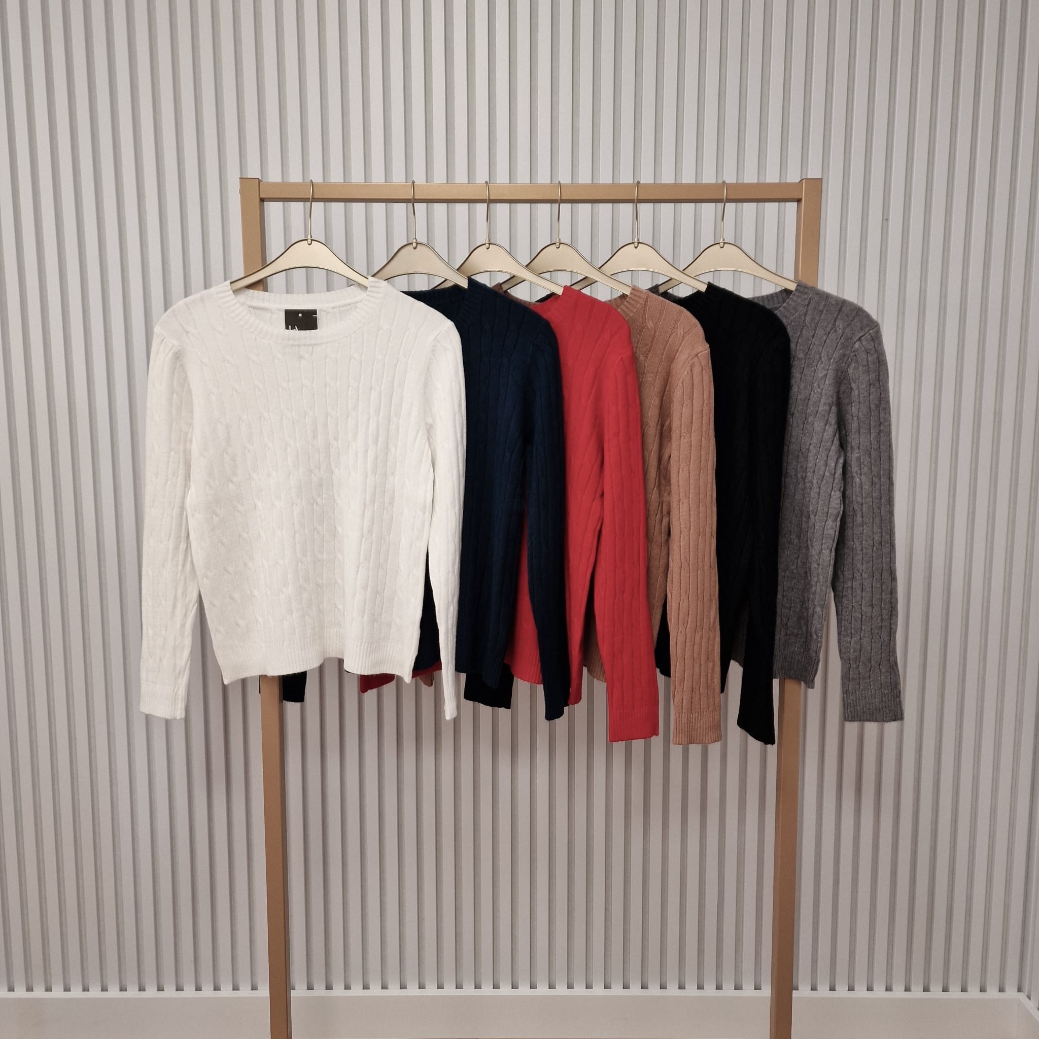 Een heerlijke trui met kabelpatroon en ronde hals. De trui is tijdloos en is gemakkelijk te combineren. Het klassieke kabelpatroon geeft een luxe, handgebreide uitstraling. De trui is een veelzijdige aanwinst voor je garderobe.