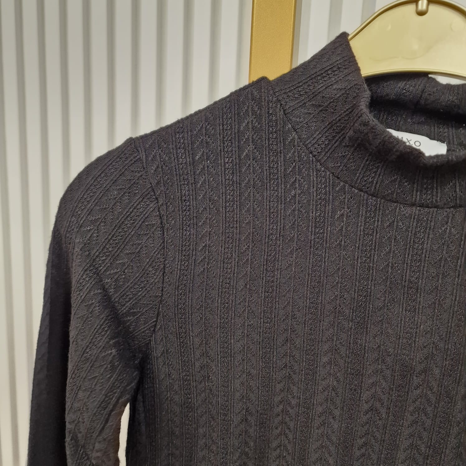 Truitje met col, uitgevoerd in zachte stof met een subtiel patroon. De trui voelt licht, soepel en comfortabel aan. Perfect te combineren met een jasje of vest.
