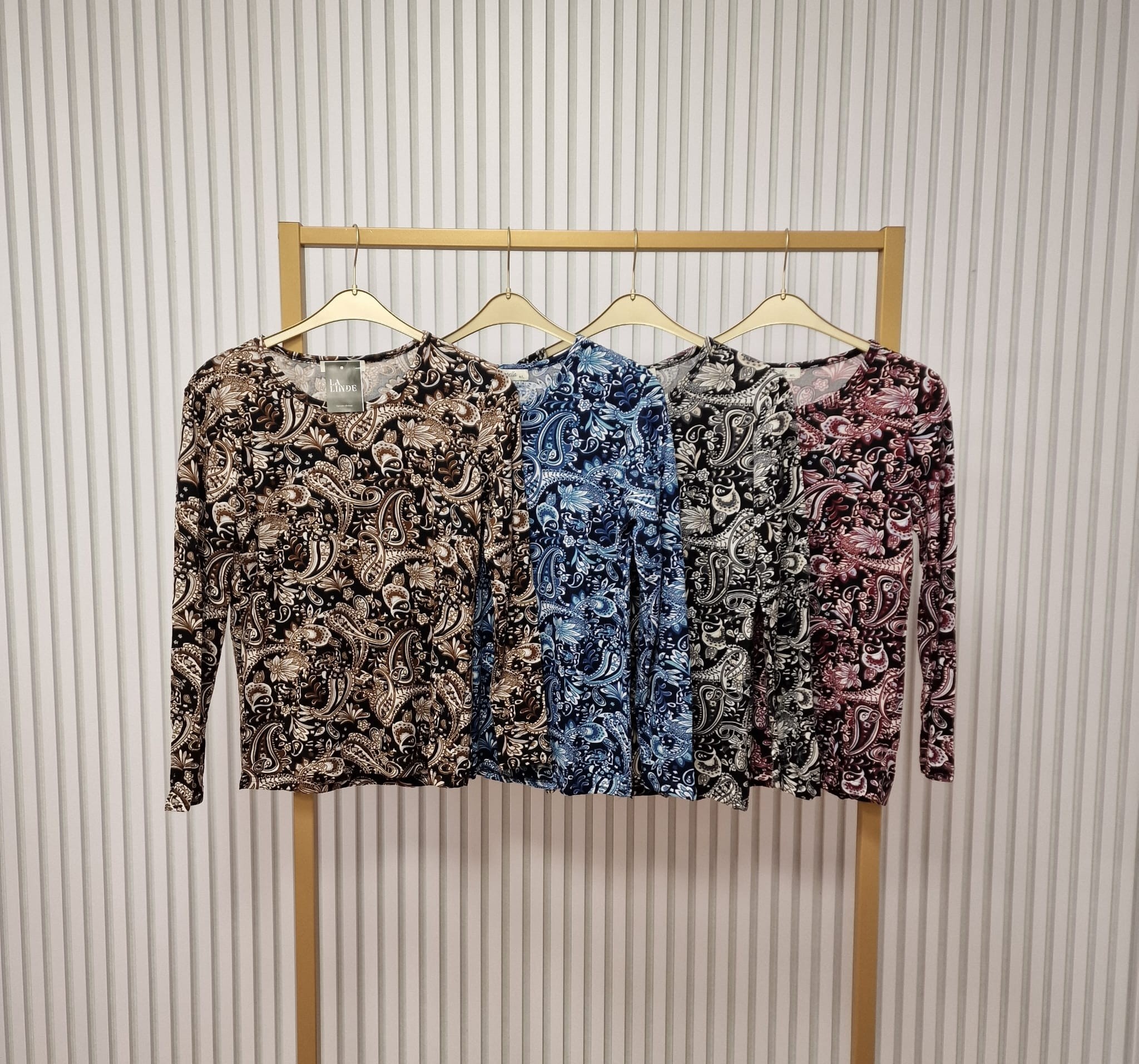 Deze klassieke trui met ronde hals en lange mouwen is een fijne keuze voor de stijlvolle, oudere dame die waarde hecht aan comfort en een verzorgde uitstraling. De trui is gemaakt van een zachte, soepele stof die prettig draagt.