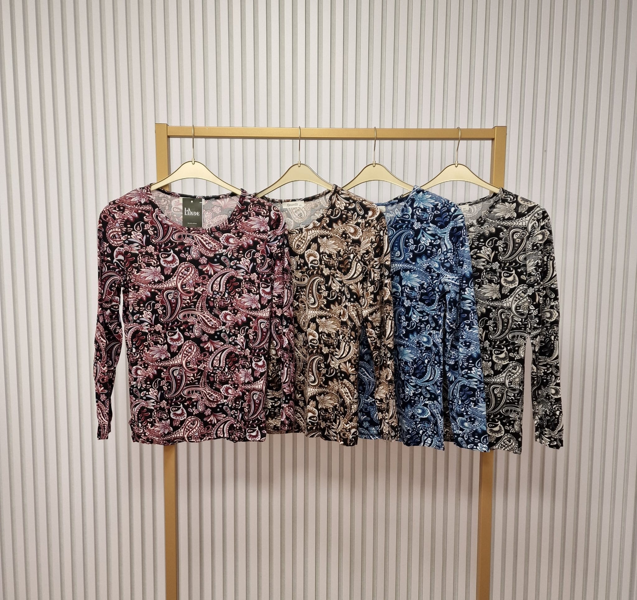 Deze klassieke trui met ronde hals en lange mouwen is een fijne keuze voor de stijlvolle, oudere dame die waarde hecht aan comfort en een verzorgde uitstraling. De trui is gemaakt van een zachte, soepele stof die prettig draagt.