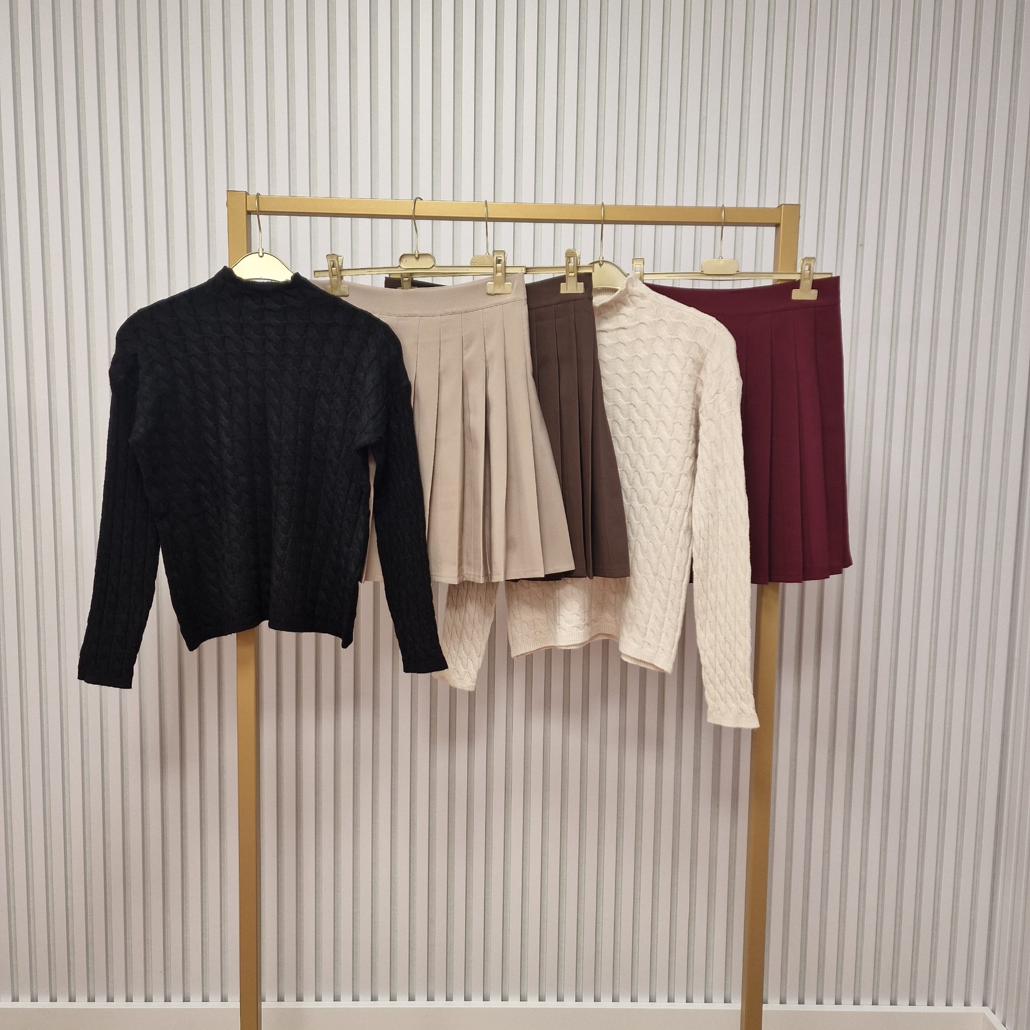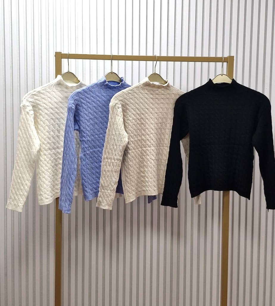 Cosy trui met kabelpatroon en een turtle boord. De trui is gemaakt in zacht materiaal wat heerlijk aanvoelt en makkelijk te combineren is.