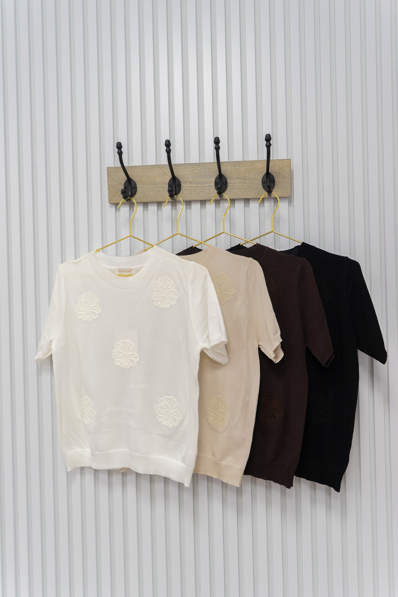 Fijn truitje van zacht, comfortabel materiaal dat heerlijk draagt. Het subtiele geborduurde bloemmotief in dezelfde kleur geeft een verfijnde touch zonder te overheersen. Een veelzijdig item dat ideaal te combineren is en in iedere garderobe past.
