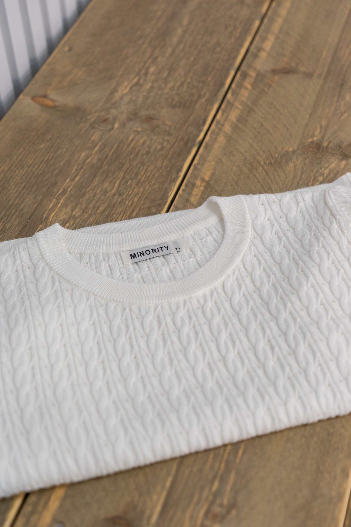 Dit schattige truitje is gemaakt van zachte, mooie kwaliteit en heeft een fijn opengewerkt kabelpatroon. Perfect voor een stoere of lieve look en ideaal te combineren. Het truitje valt kleiner en is ook geschikt voor jonge meiden.