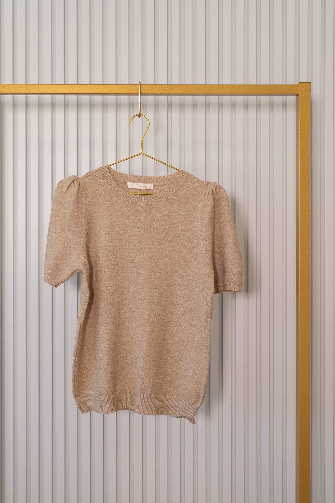 Truitje in een mooie, zachte knit met een gerimpelde mouwinzet voor een subtiel speels effect. Comfortabel en stijlvol, perfect om solo te dragen of te combineren met laagjes voor een veelzijdige look.