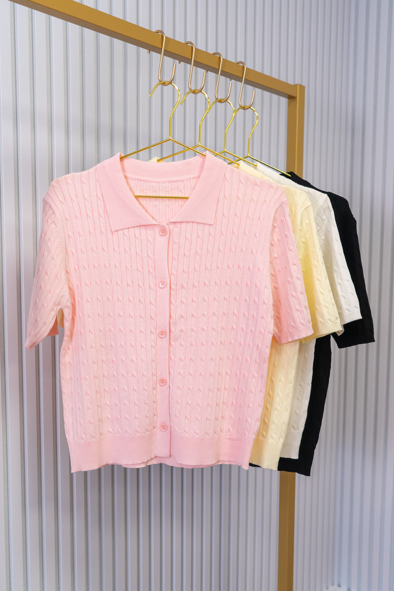 Stijlvol en tijdloos: dit truitje met kraag en knoopsluiting is uitgevoerd in een klassiek kabelpatroon. Het zachte, comfortabele materiaal maakt het ideaal voor elke dag, terwijl het elegante design je outfit direct een chique touch geeft.