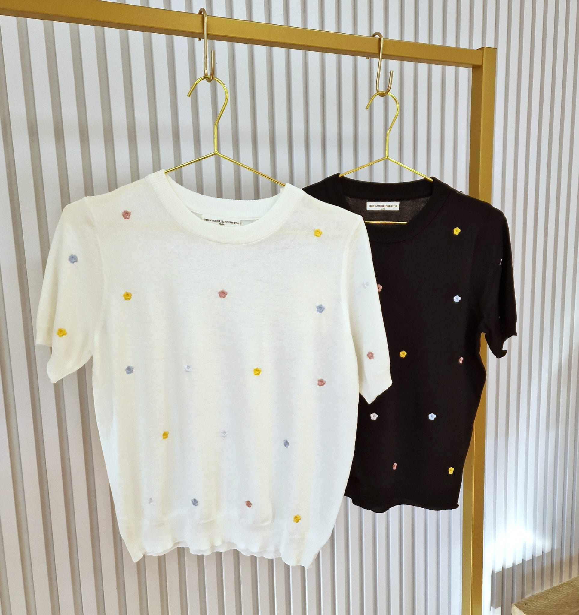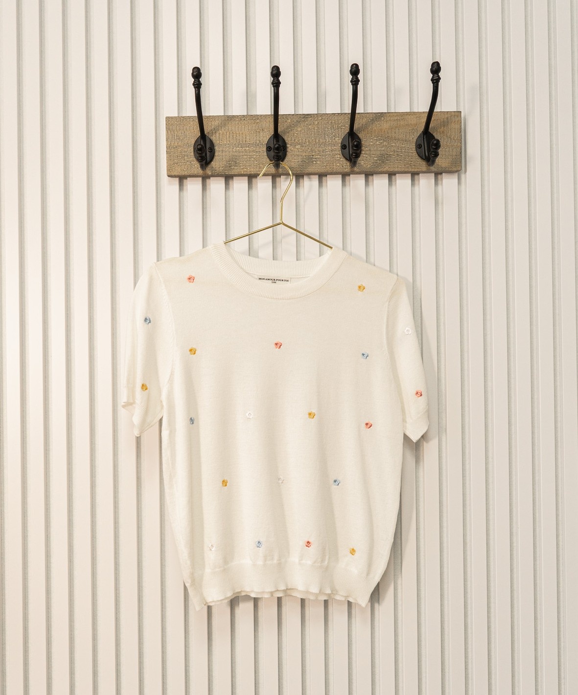 Truitje van zachte stof met een comfortabele pasvorm. Het voorpand is verfraaid met kleine geborduurde bloemetjes in trendy kleurtjes. Combineer het met een rok in dezelfde kleur uit onze collectie voor een complete, elegante look.