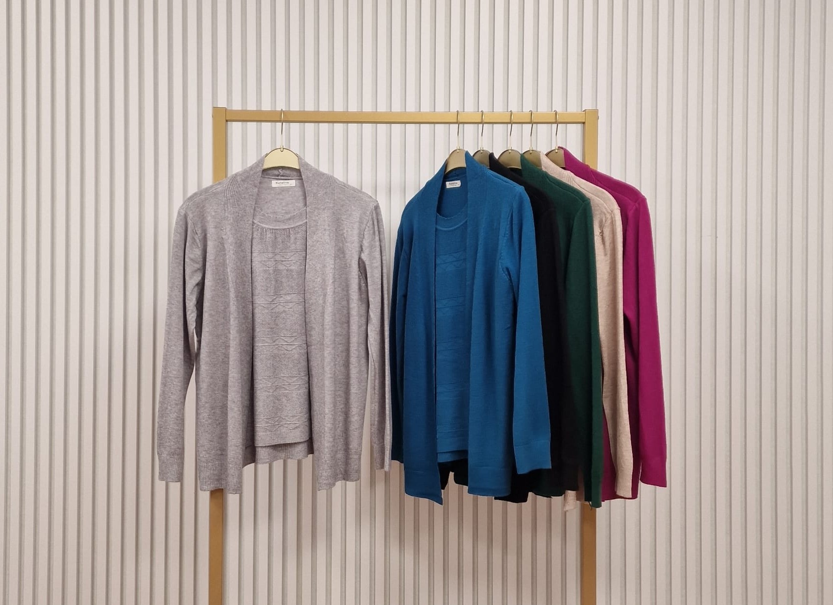 Geef je garderobe een stijlvolle upgrade met deze tijdloze twinset. Dit 2-delige set bestaat uit een comfortabele top en een bijpassend vest. Perfect op elkaar afgestemd voor een moeiteloze, verzorgde look.