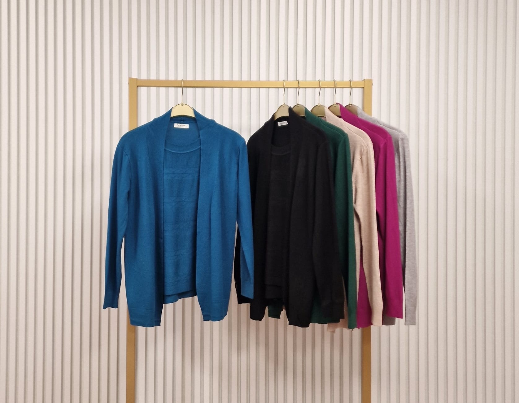 Geef je garderobe een stijlvolle upgrade met deze tijdloze twinset. Dit 2-delige set bestaat uit een comfortabele top en een bijpassend vest. Perfect op elkaar afgestemd voor een moeiteloze, verzorgde look.