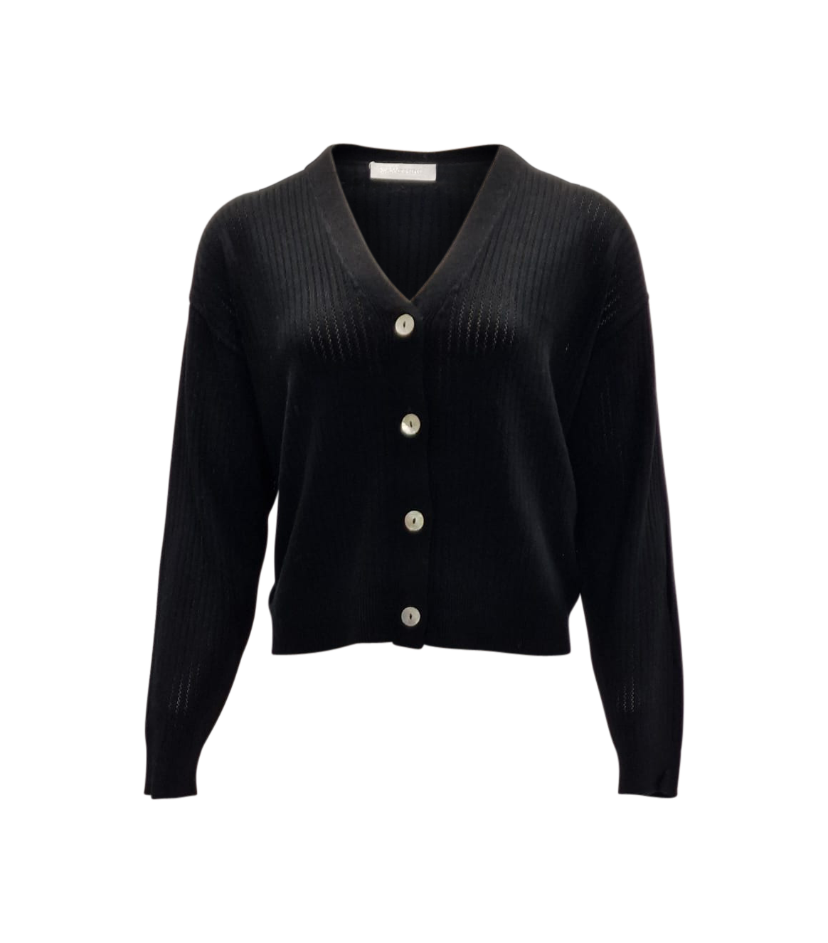Fijn gebreid damesvest met V-hals in mooi patroon. Het vest heeft een mooie taille lengte en kan perfect gedragen worden op een jurk of rok en kan zowel open als dicht gedragen worden. In verschillende kleuren verkrijgbaar.