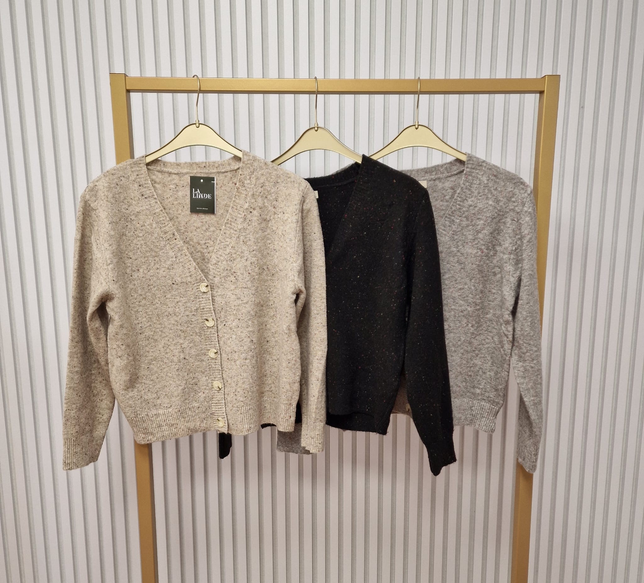 Dit gemêleerde damesvest is een veelzijdig kledingstuk. Het vest heeft een V-hals en knoopsluiting. Het gemêleerde breisel voegt diepte en speelsheid toe aan je look en maakt het vest makkelijk te combineren met verschillende kleuren en stijlen.