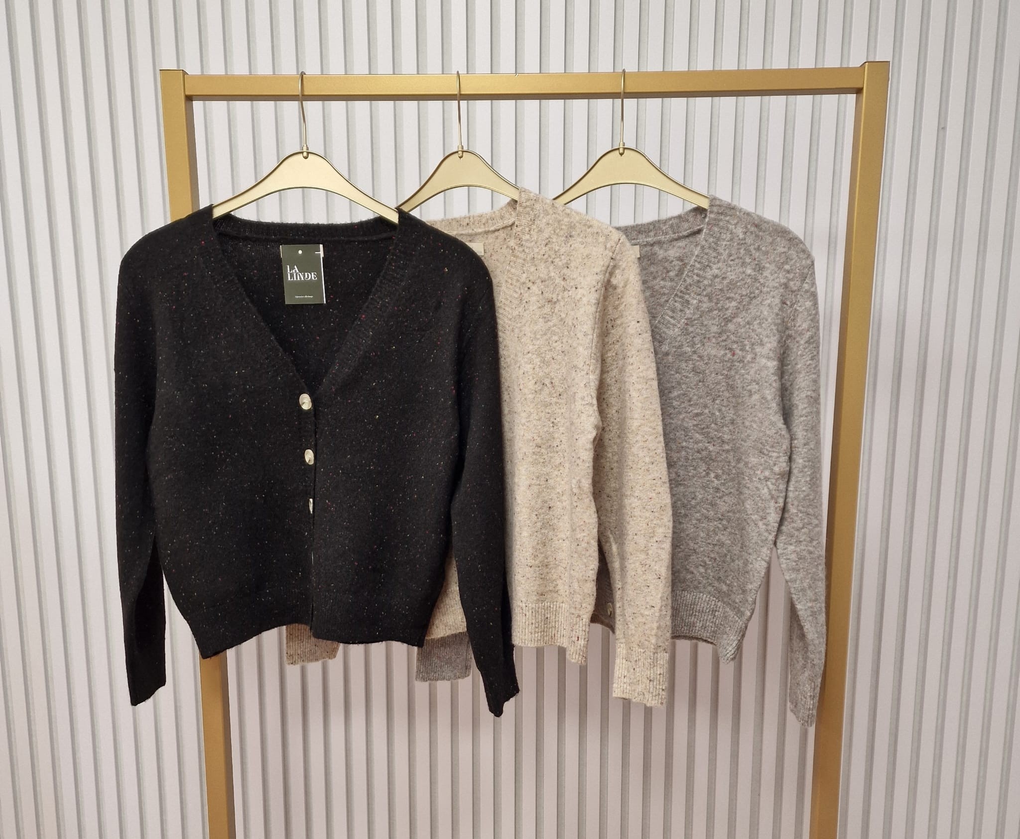 Dit gemêleerde damesvest is een veelzijdig kledingstuk. Het vest heeft een V-hals en knoopsluiting. Het gemêleerde breisel voegt diepte en speelsheid toe aan je look en maakt het vest makkelijk te combineren met verschillende kleuren en stijlen.